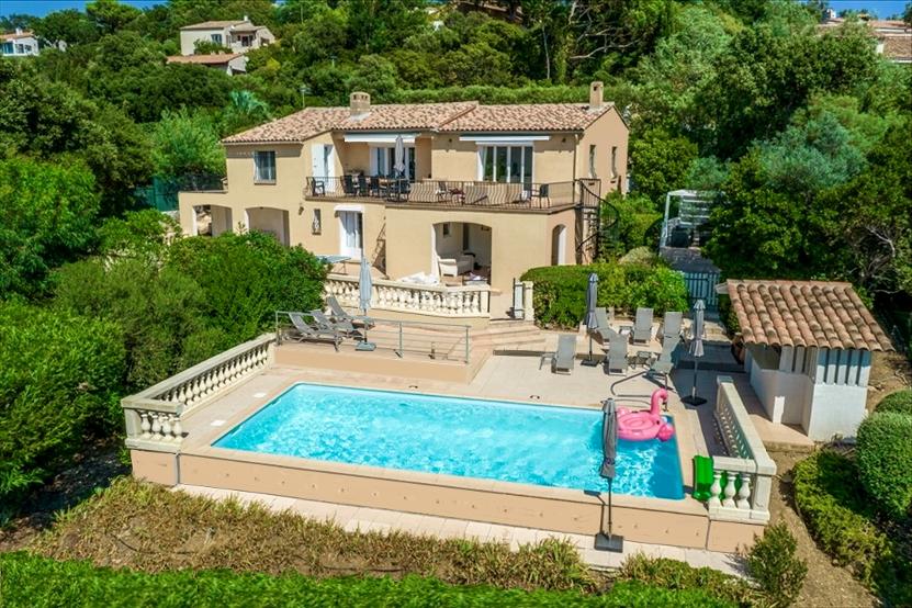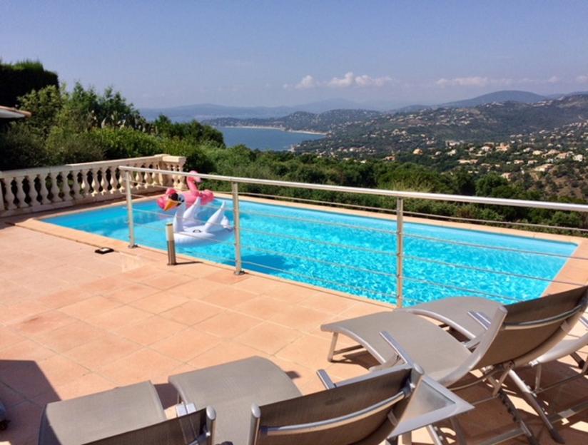 · Private salt water swimming pool (heated) with poolside bar · 5 double bedrooms (ensuite, air-conditioned) · 250 sq m villa, 250 sqm garden · 2 gyms, boules pitch, ping pong table · 2 BBQs · Wi-fi, TV film streaming, music systems, · Baby cot and high chair and security gates to pool |