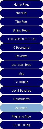 Visit the markets in Les Issambres, Ste Maxime & Frejus. St-Maxime hosts lots of markets, including a daily flower-and-food market on Rue Fernand-Bessy, vendors sell a variety of nick-nacks on place Jean-Mermoz. In the pedestrian streets of the old town an arts-and-crafts fair takes place daily all summer. The atmosphere is calm and families are in the majority. A 16th-century fort in the village, built by the monks of Lérins (who also named the port), houses a museum. There is a smart Casino on the beach. |