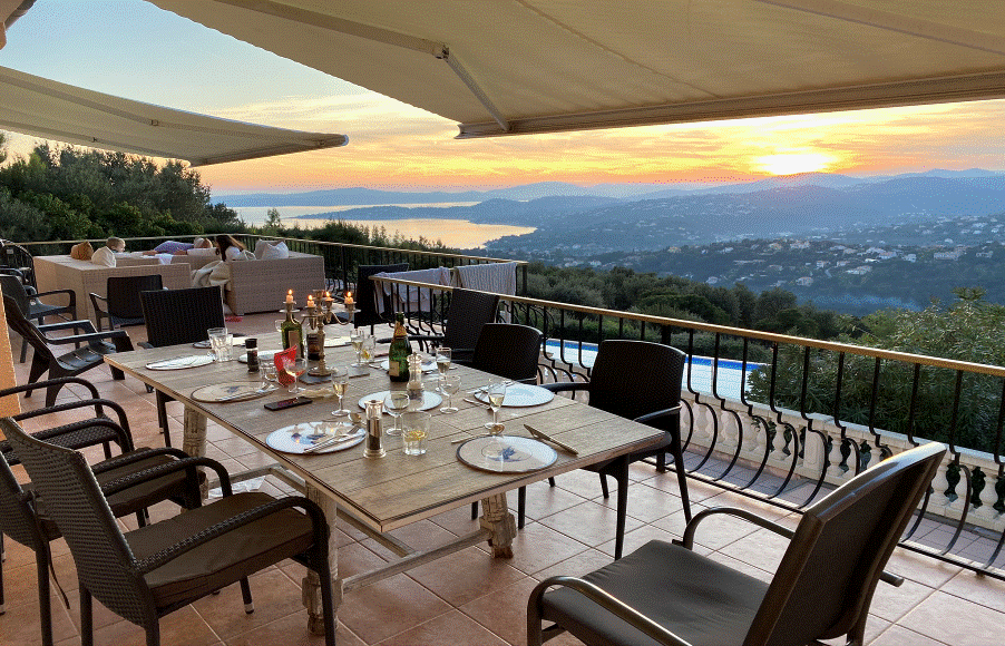 This stunning, luxurious villa sits on the highest ridge in Les Issambres, with beautiful view of the Gulf of St Tropez. Accommodating 10 guests in 5 air-conditioned double bedrooms, all with ensuite bathrooms, with 2 private gyms (one airc-conditioned and the other hot!), a large private salt water pool and a verdant garden overlooking the bay. Gulf Stream is 5 minutes from the sandy beach at Les Issambres, 10 minutes from Nartelle beach,15 minutes from Ste Maxime and 20 minutes from St Tropez by Bateau Verte across the bay. |